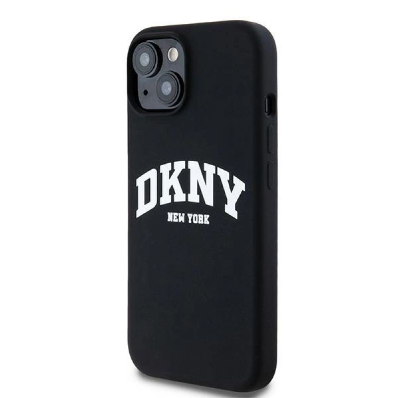 DKNY Liquid Silicone White Printed Logo MagSafe Case for iPhone 14 / 15 / 13 - Black