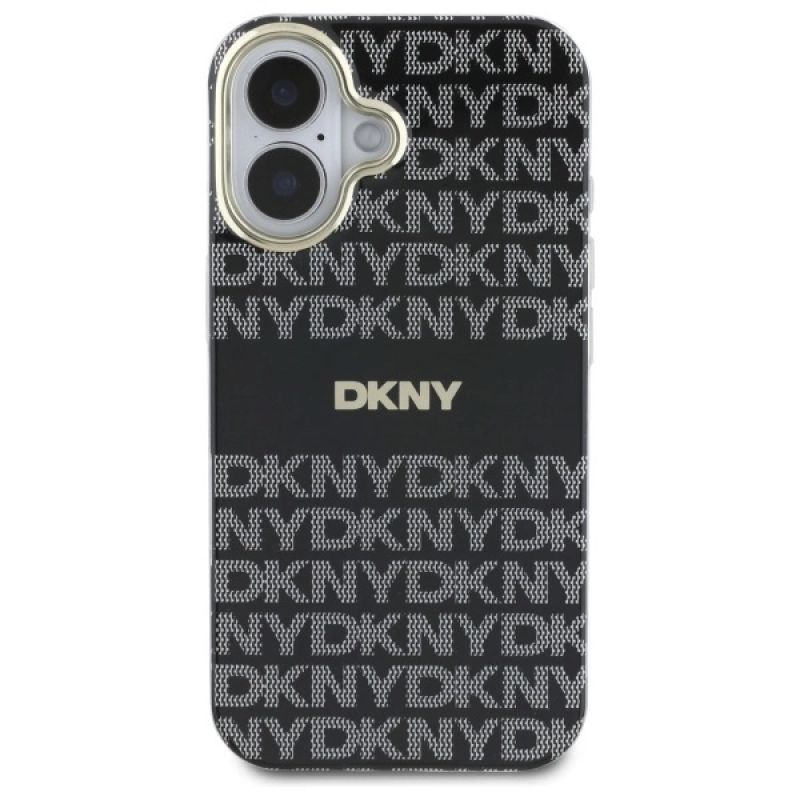 DKNY Repeat Texture Pattern With Stripe iPhone 16 Case - Black