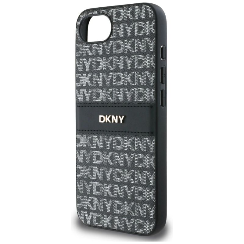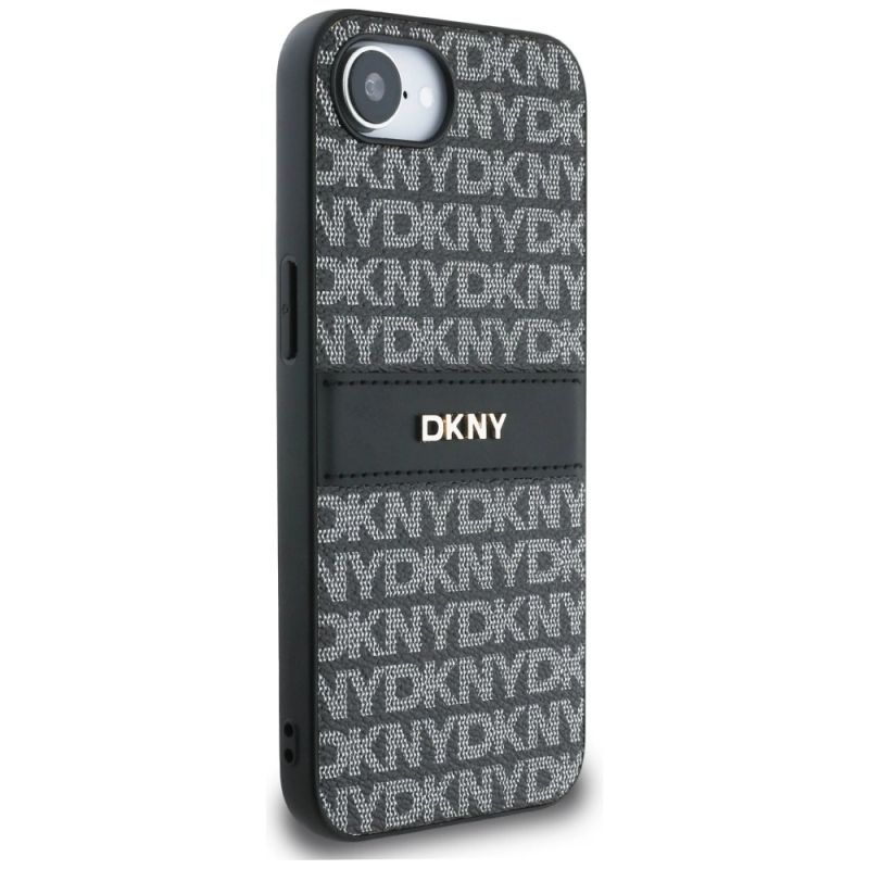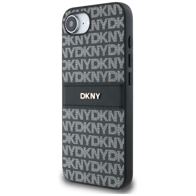 DKNY Repeat Texture Pattern with Tonal Stripe case for iPhone 16e - black