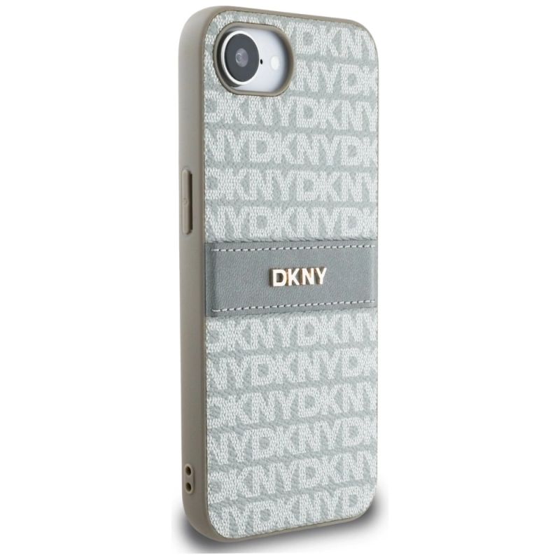 DKNY Repeat Texture Pattern with Tonal Stripe iPhone 16e Case - Beige