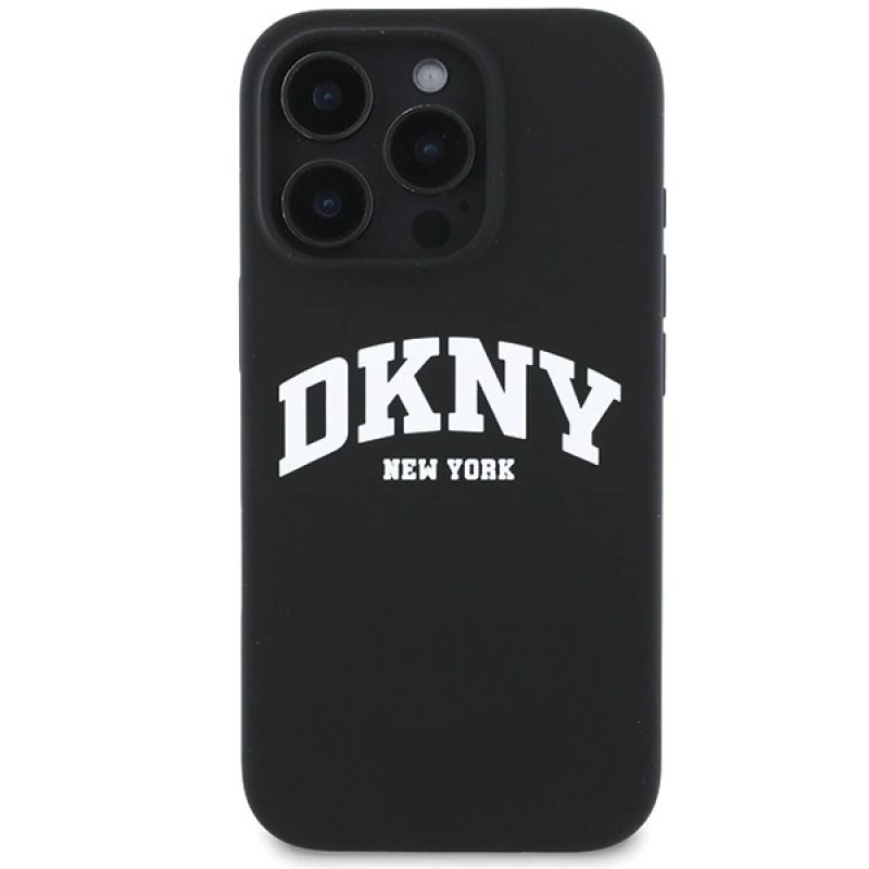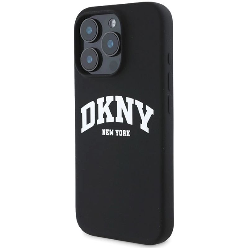 DKNY Silicone White Printed Logo MagSafe iPhone 16 Pro Case - Black