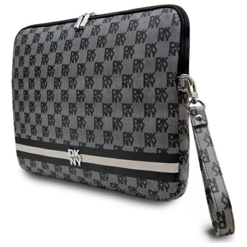 DKNY Sleeve Checkered Pattern Printed Stripes 14" Laptop Case - Black