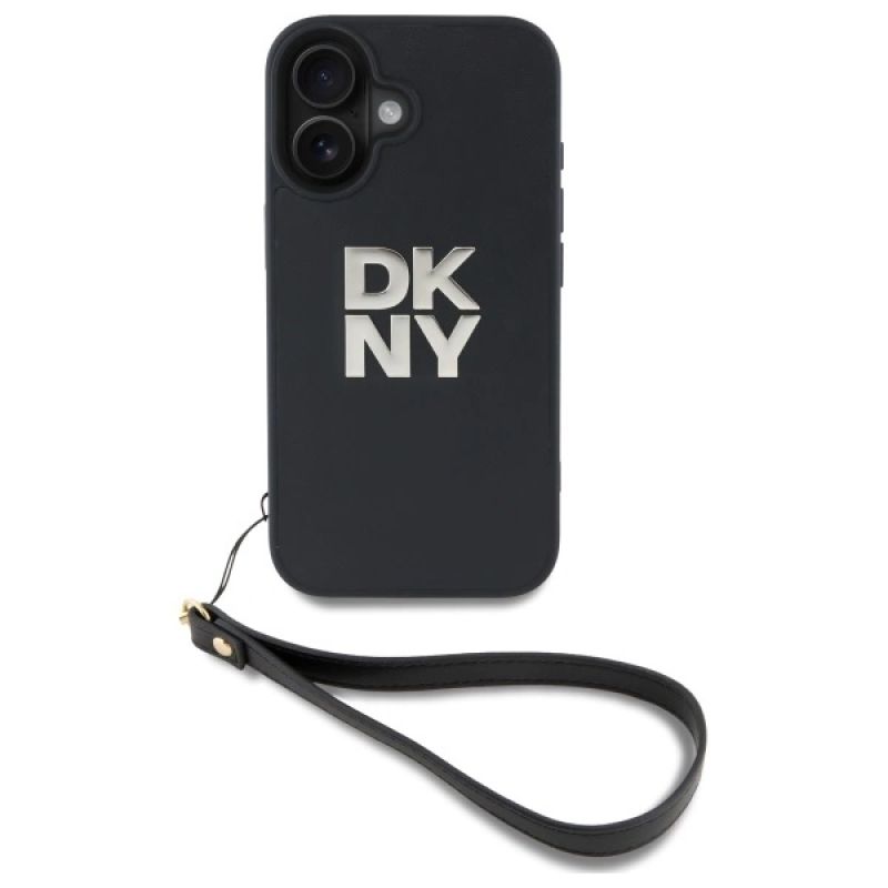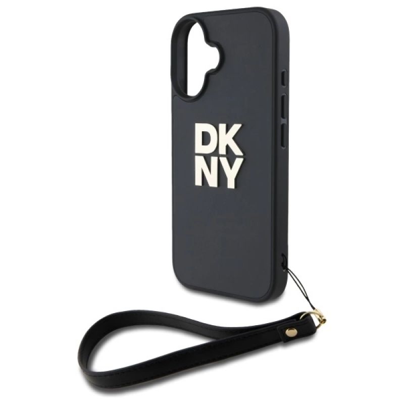 DKNY Wrist Strap Stock Logo iPhone 16 Case - Black