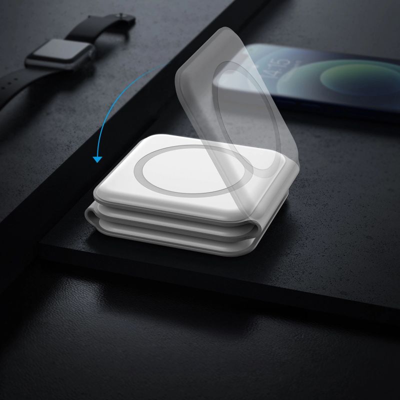 This charger is not only an effective charger, but also a convenient phone stand. Thanks to the foldable design, you can easily place your phone in a comfortable position to keep track of messages and calls while charging. Perfect for working in the office or at home.