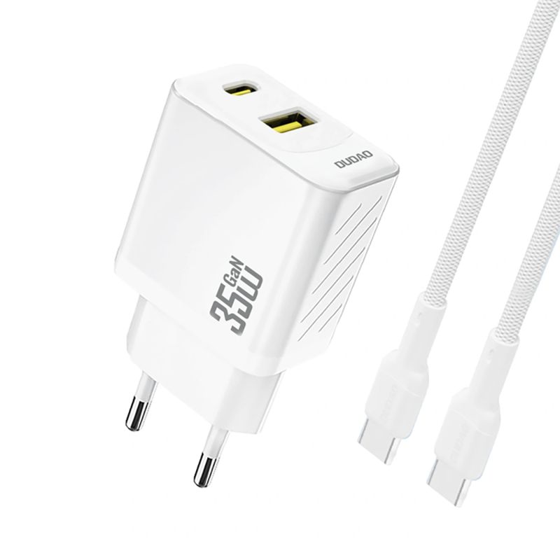 Dudao A27MaxCEU PD QC 35W USB-A USB-C Wall Charger with USB-C Cable - White