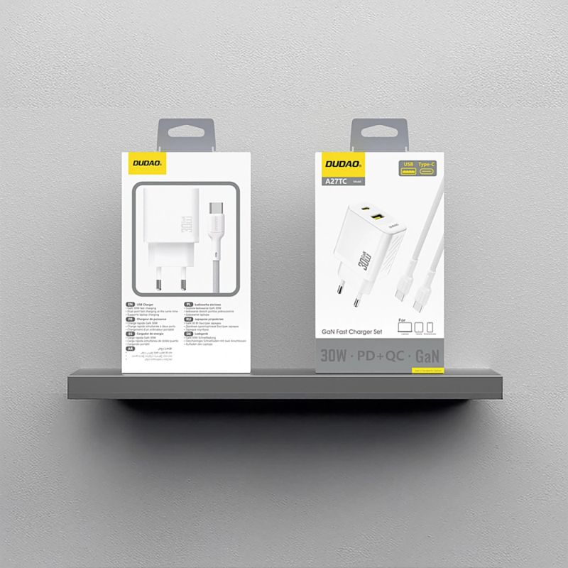 Dudao A27TCEU PD 30W GaN USB-A USB-C Wall Charger with USB-C Cable - White