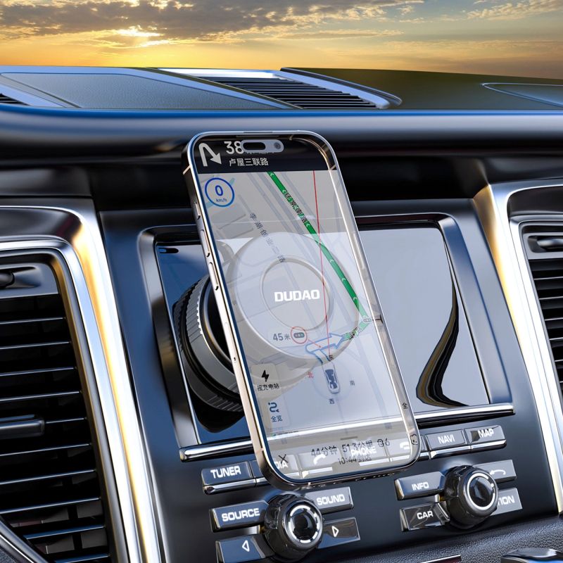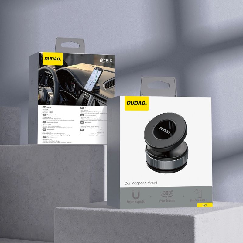 The Dudao F24PRO car mount is designed for maximum stability and comfortable smartphone use while driving. Vacuum mounting technology ensures a very strong and secure hold on both the windshield and dashboard. The MagSafe-compatible magnetic system allows for quick and secure phone placement. The robust construction effectively reduces vibrations, even on uneven surfaces. Multi-directional adjustment allows for precise screen positioning.