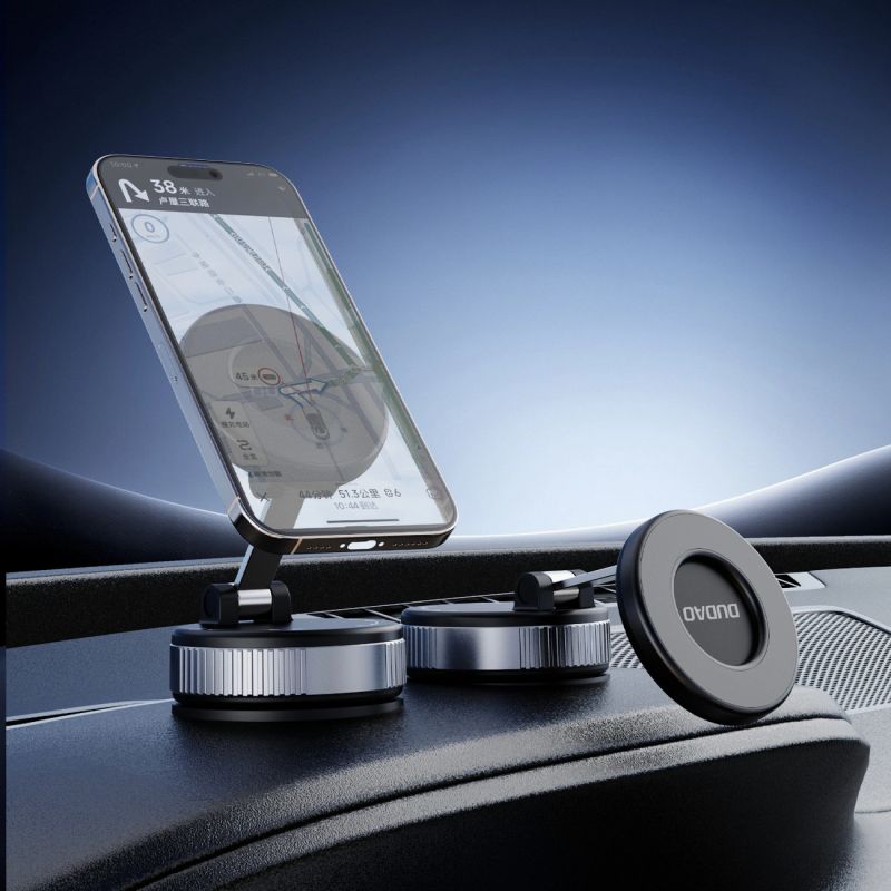 The Dudao F24PRO car mount is designed for maximum stability and comfortable smartphone use while driving. Vacuum mounting technology ensures a very strong and secure hold on both the windshield and dashboard. The MagSafe-compatible magnetic system allows for quick and secure phone placement. The robust construction effectively reduces vibrations, even on uneven surfaces. Multi-directional adjustment allows for precise screen positioning.