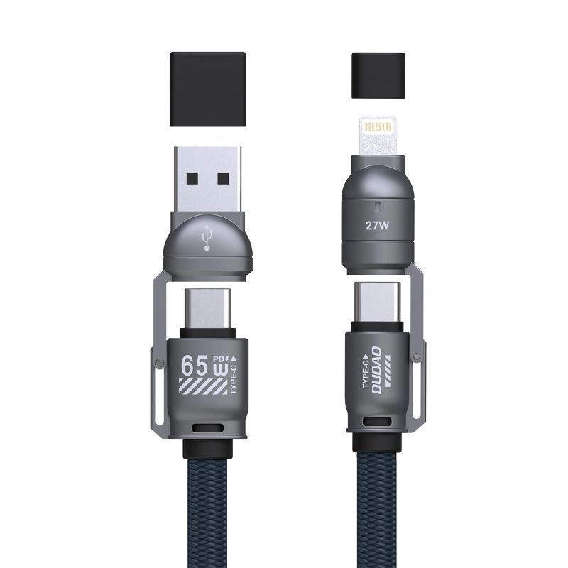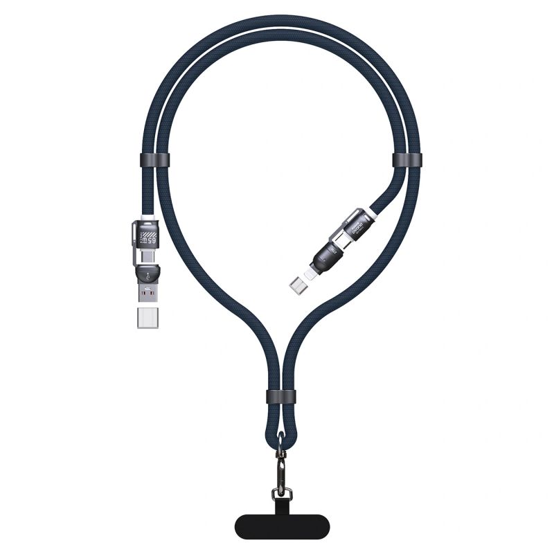 This modern and versatile 4-in-1 Dudao L20Max cable will meet the expectations of even the most demanding users. With up to 65W of power handling and support for Power Delivery and Quick Charge technologies, it ensures lightning-fast charging for your devices. Crafted from high-quality aluminum alloy and braided nylon, it guarantees durability and resistance to damage. The ability to configure various port combinations (USB-A - USB-C, USB-C - USB-C, USB-C - Lightning, USB-A - Lightning) makes this cable ideal for everyone. Additionally, its innovative design allows it to be used as a phone lanyard, providing convenience and functionality in one.