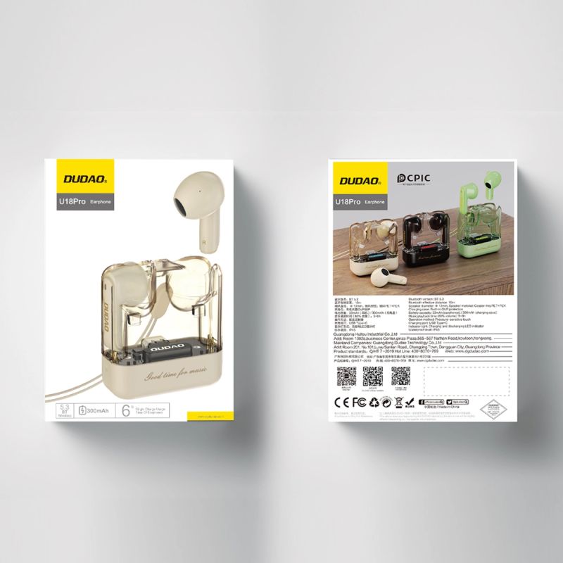 Whether you're listening to music on the go or while training, Dudao U18Pro ensures a perfect fit. Their ergonomic design makes them comfortable to wear, and the transparent housing adds lightness and style.