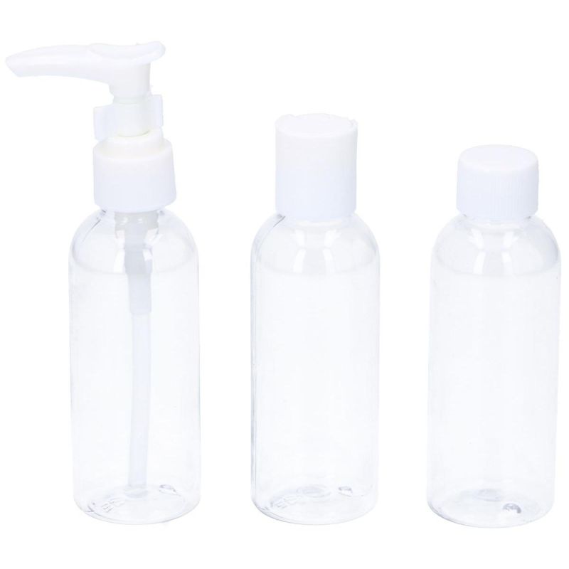 Transparent travel bottles are typically compact, saving space in your luggage, and three types of caps make it easy to store and dispense a variety of liquids, such as shampoo, conditioner, shower gel, makeup remover, or cream.