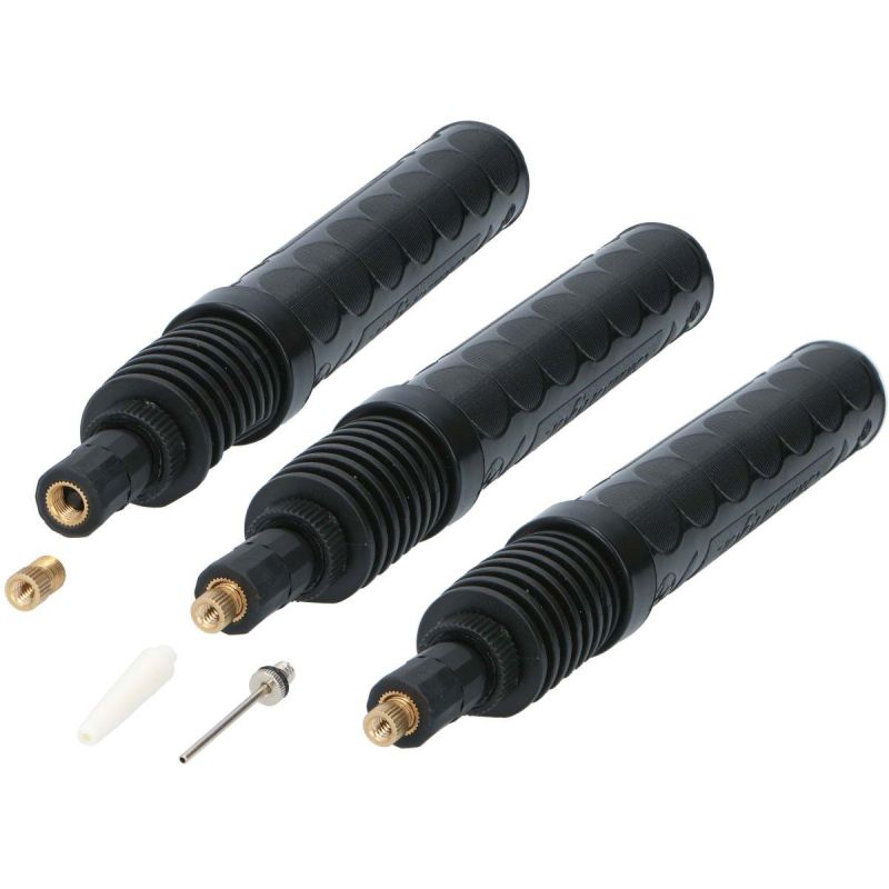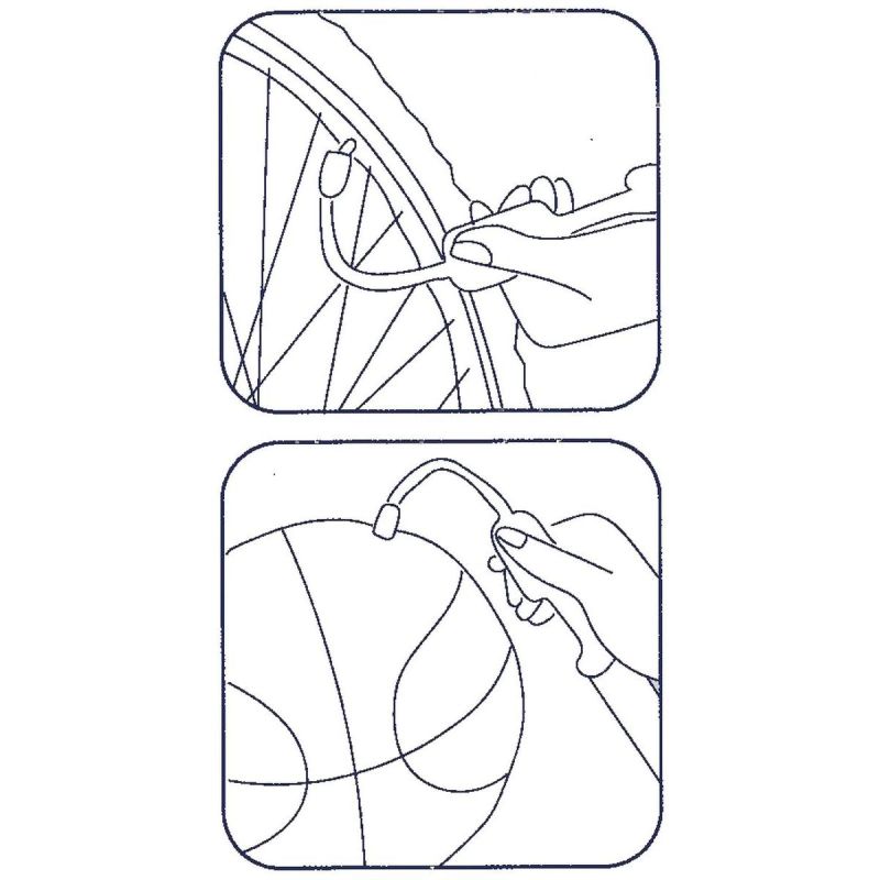 Equipped with a needle valve and an adapter for bicycle valves, it will allow you to inflate not only the ball, but also the inner tube of your bike.