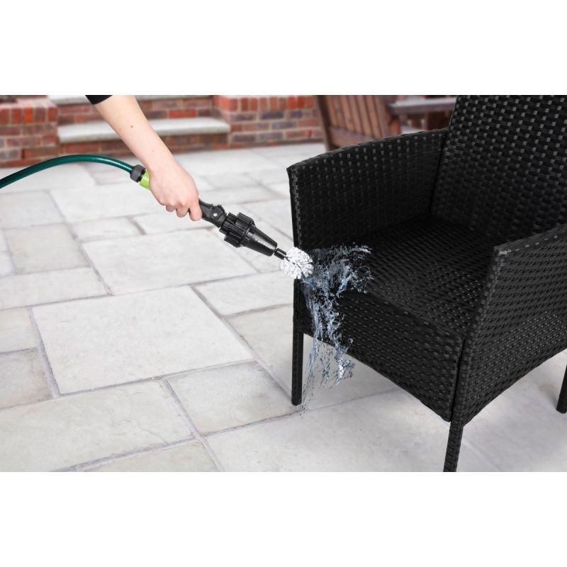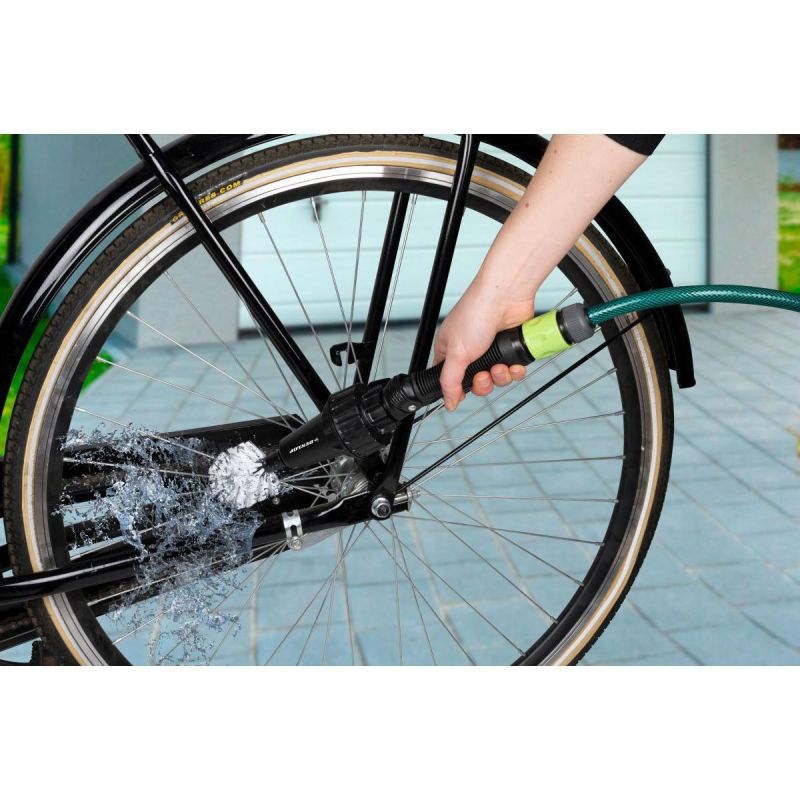 The ability to connect the brush to a garden hose using a 3-inch quick connector allows you to clean any part of your car or bike under running water and rinse away dirt while brushing.