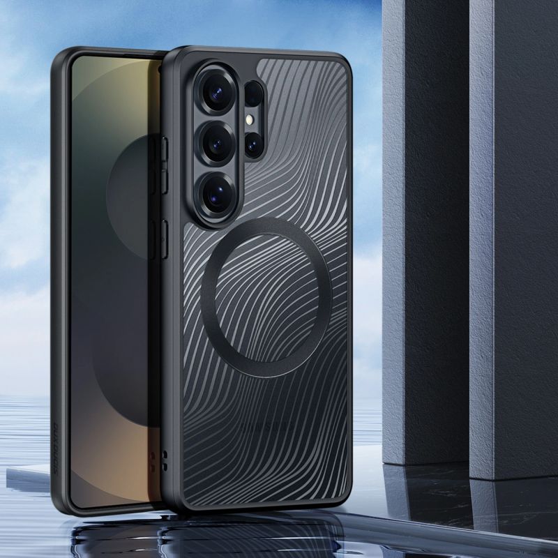 The Dux Ducis Aimo Mag is an elegant case designed for the Samsung S26 Ultra, combining a slim design with full MagSafe compatibility. Built-in magnets ensure stable attachment of accessories and convenient wireless charging without removing the case. The matte silicone rubber finish is resistant to fingerprints, fading, and moisture, ensuring the case maintains its aesthetic for a long time. Flexible edges improve grip and ease installation. This functional protection enhances the phone's modern character.