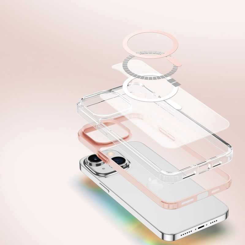 Magnetic case for iPhone 14 Plus with MagSafe with a pink frame