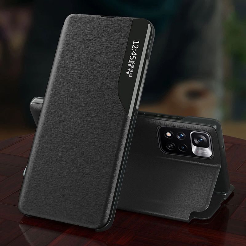 Eco Leather View Case Elegant Flip Cover Stand Function Poco M4 Pro 5G Black