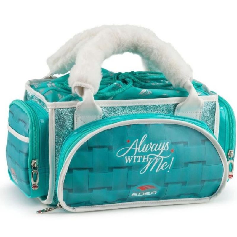 Edea Always With Me Bag. A beautiful and highly practical bag with plenty of storage options. Designed for everything you need and a little more! It'll bring a touch of Italian style to the rink and beyond! Key Features: Keep up with the latest fashion trends with the ever-popular With Me bag, now available with detachable faux fur handles, a trendy basketwea pattern, and stylish white trim. 9 pockets, for makeup, a cell phone, a towel, drinks, keys, a tablet, a music CD, and protective gear. All very stylish and zipped. The large makeup pocket can be fully unzipped for easy access. Designed to slide over the handle of the Edea Reflex trolley.