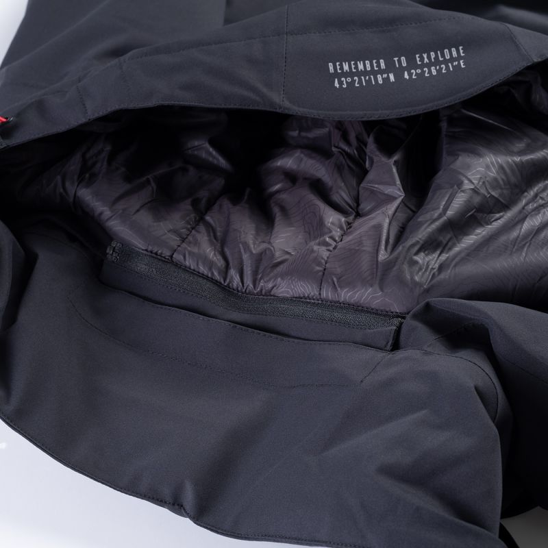 The Elbrus DILOX men's insulated jacket features an ActivGuard Pro® membrane with a 20,000 mm H2O waterproof rating and 10,000 g/m²/24h breathability, providing optimal protection in changing weather conditions. The outer material, thanks to taped seams and a DWR coating, offers increased water resistance. The synthetic fill ensures adequate thermal comfort, even in heavy rain. The DILOX model features a detachable, adjustable hood and drawstring waistband , allowing you to adjust the jacket to your physique. Additionally, the jacket has two side pockets and two chest pockets. You can safely store your wallet or phone in the internal zippered pocket .