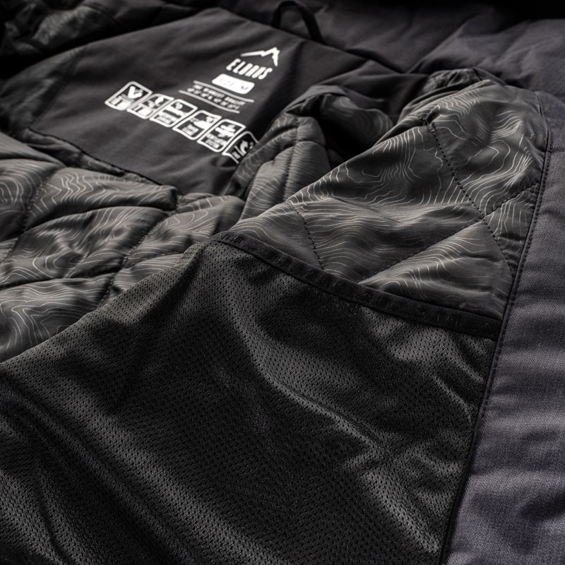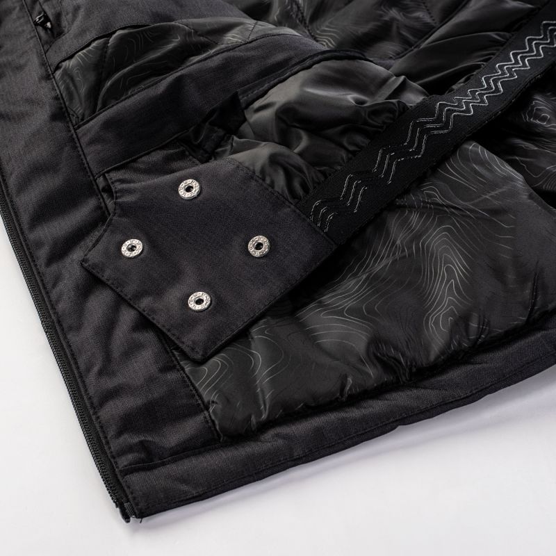 The jacket is equipped with side pockets, a ski pass pocket, and ventilation openings. The high stand-up collar zipper is finished with a chin guard. Additionally, the jacket is equipped with a detachable hood with side adjustments and a powder skirt, perfect for heavy rainfall and possible capsizes. A DWR coating is a special, highly durable fabric impregnation that increases the surface tension of water, ensuring a high degree of water resistance. The jacket is made of durable polyester for long-lasting use, while the filling performs excellently by retaining the wearer's warmth and providing adequate ventilation. The entire structure is secured with taped seams to prevent unraveling and additionally seal the jacket.
