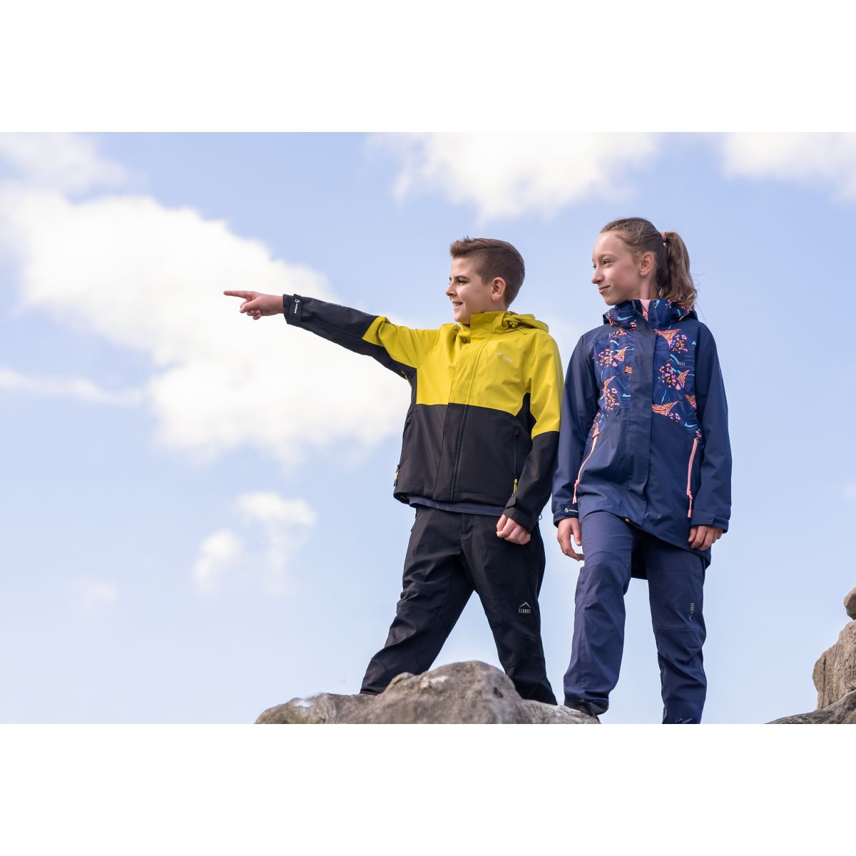 The Elbrus POUL TB junior jacket features a 10,000 mm H2O waterproof membrane and a 10,000 g H2O/m²/24h breathability rating, allowing your child to walk in light to moderate rain without worrying about getting wet. Additionally, the jacket is DWR-coated, an external fabric impregnation that enhances the material's water resistance. Underarm zippers help regulate body temperature while hiking. The jacket has an adjustable, detachable hood that protects against rain and wind. Adjustable cuffs and a drawstring waist ensure a secure fit. Two zippered side pockets allow for secure storage of small items. The bold and fashionable colors are eye-catching and make your child more visible.