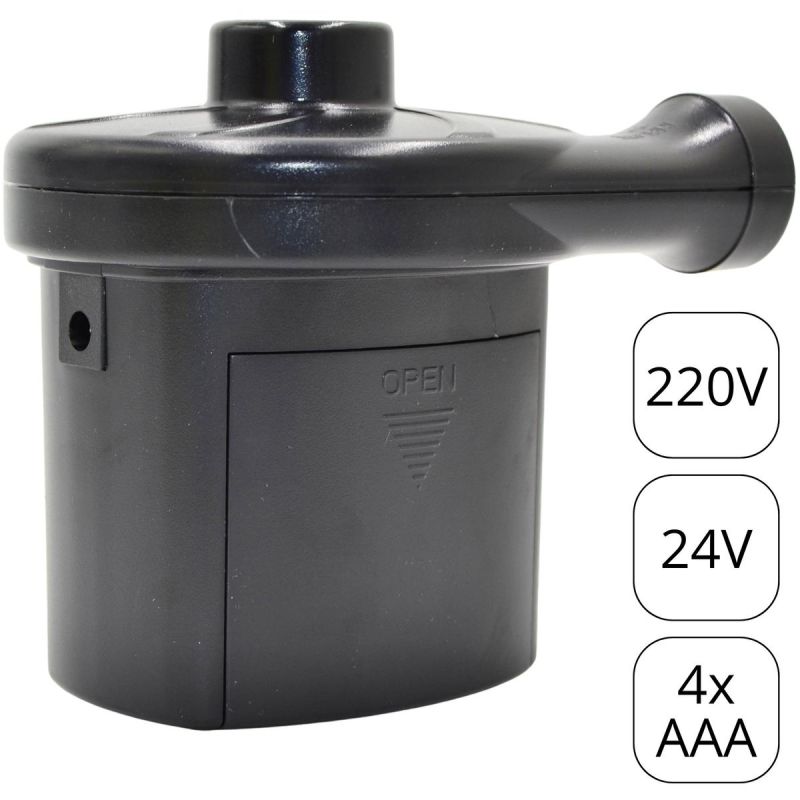 The 29P312-2EU electric pump offers exceptional versatility thanks to its three-way power supply: a 12V DC plug, batteries, or 220-240V AC power. The 12V DC plug is ideal for connecting to a car's cigarette lighter, making it ideal for camping, traveling, and trips to the beach. Alternatively, the pump can be powered by batteries outdoors or by traditional AC power at home, making it a versatile tool ready for use in any environment.