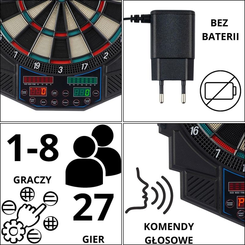 Choose the ENERO PRO ELECTRONIC DART WITH POWER SUPPLY AND 4 COUNTERS 49CM and enjoy endless entertainment! Perfect for parties, family evenings, or aiming practice – order today and test your skills!