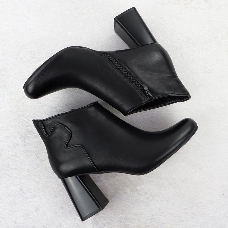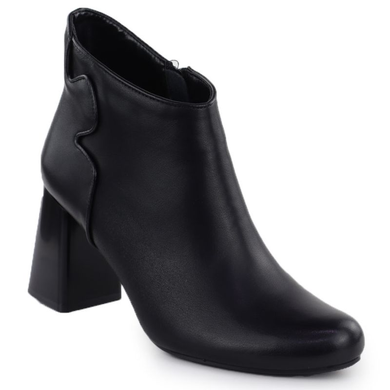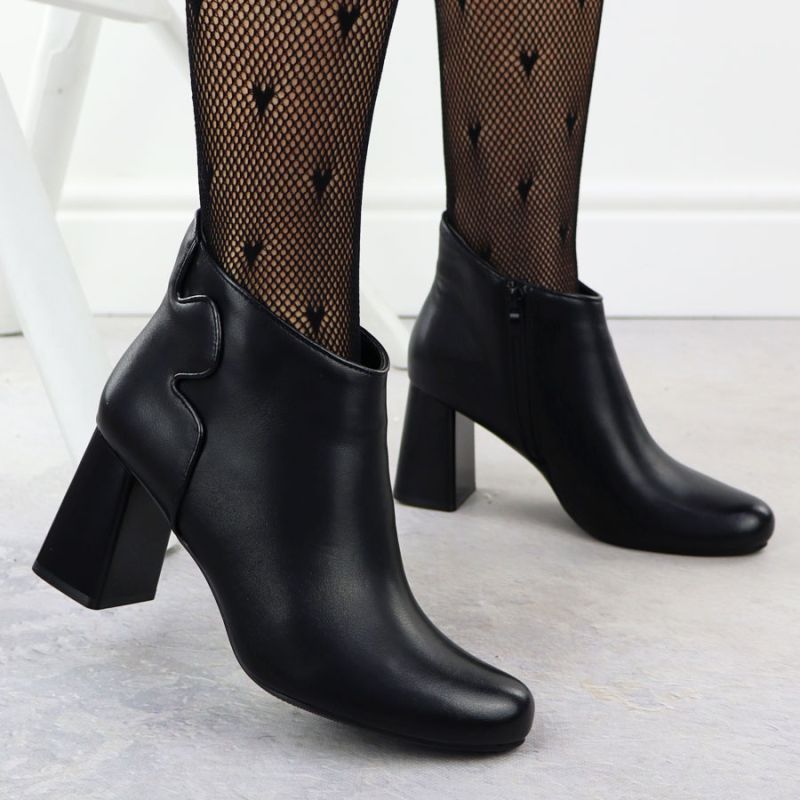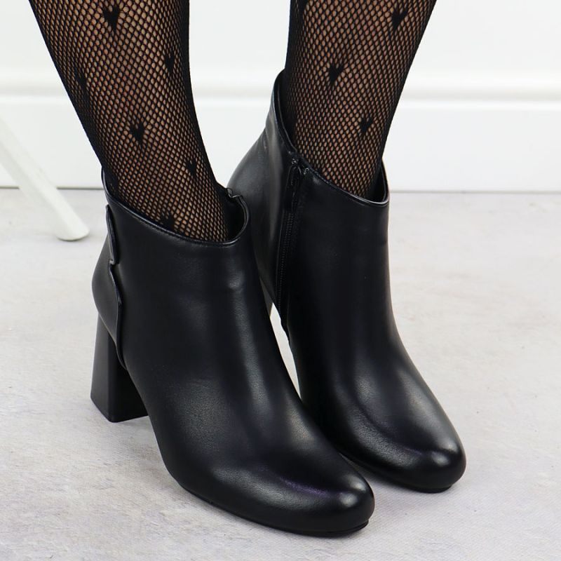 Elegant black leather ankle boots with a block heel, Jezzi OLI21-2