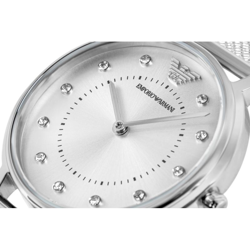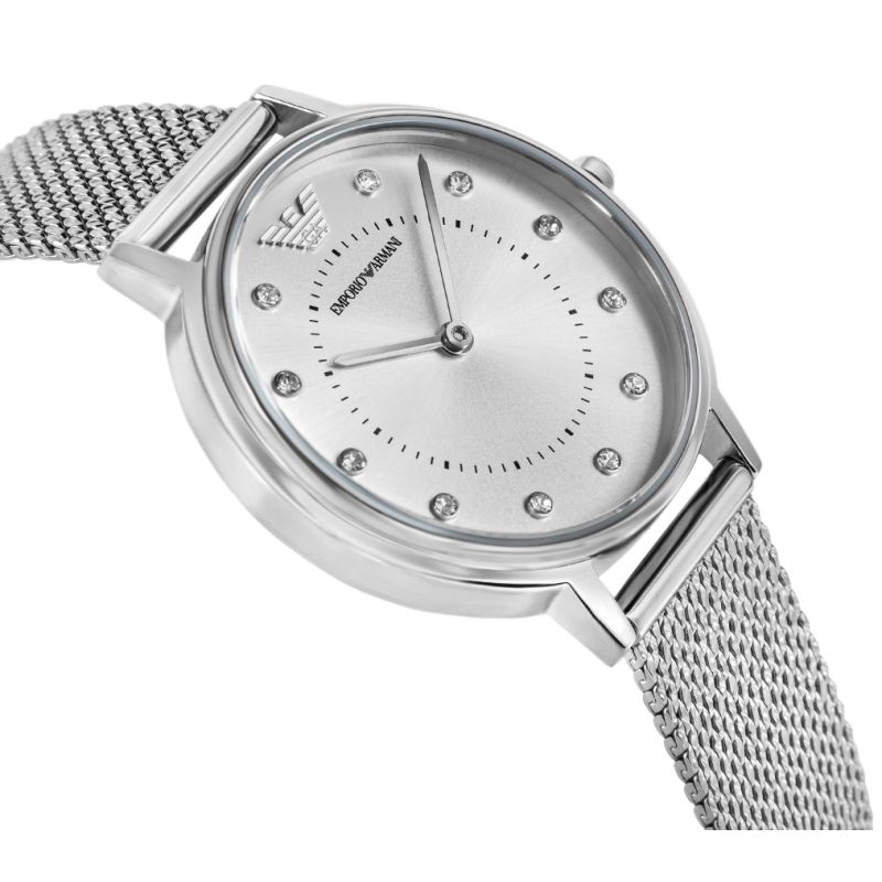 The Emporio Armani Kappa AR11128 Women's Watch is an elegant timepiece designed for women who value Italian prestige and timeless style. Crafted from high-quality silver-tone stainless steel, it offers exceptional elegance and versatility, perfectly complementing any outfit. The minimalist dial with the distinctive Emporio Armani logo and precise quartz movement guarantee reliability and accuracy. The steel mesh bracelet fits perfectly on the wrist, ensuring all-day comfort. The AR11128 is perfect for both everyday and more special occasions. It symbolizes feminine elegance, subtlety, and luxurious design. The Emporio Armani Kappa AR11128 watch is the perfect choice for women who want to emphasize their style and class.
