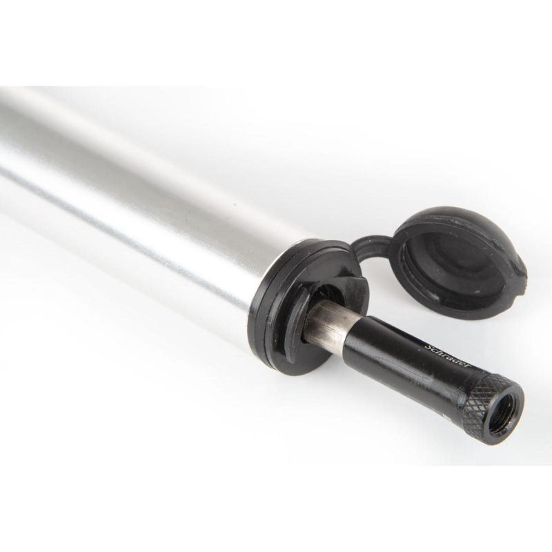 Thanks to the telescopic design, we achieve minimal size and weight. The pump is equipped with a hose hidden within the body. A rubber cap protects against moisture and dirt. The set includes a bike mount and screws. You can carry the pump in your hiking backpack without feeling its weight.