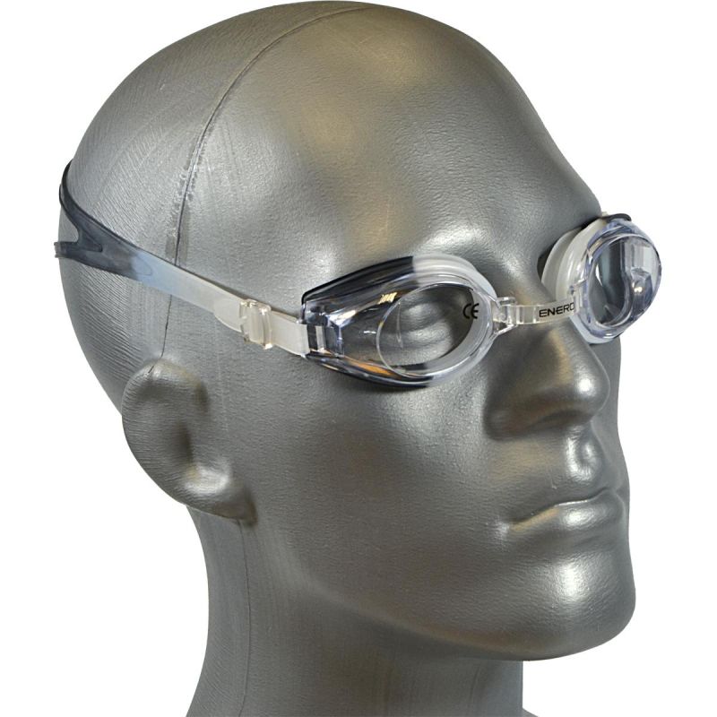 ENERO SWIMMING GOGGLES + PLUGS, designed for junior swimmers, feature hydrodynamic lens shapes and a double silicone back strap. They provide an easy and precise fit, while seals ensure a perfect fit and stability after every stroke and turn.