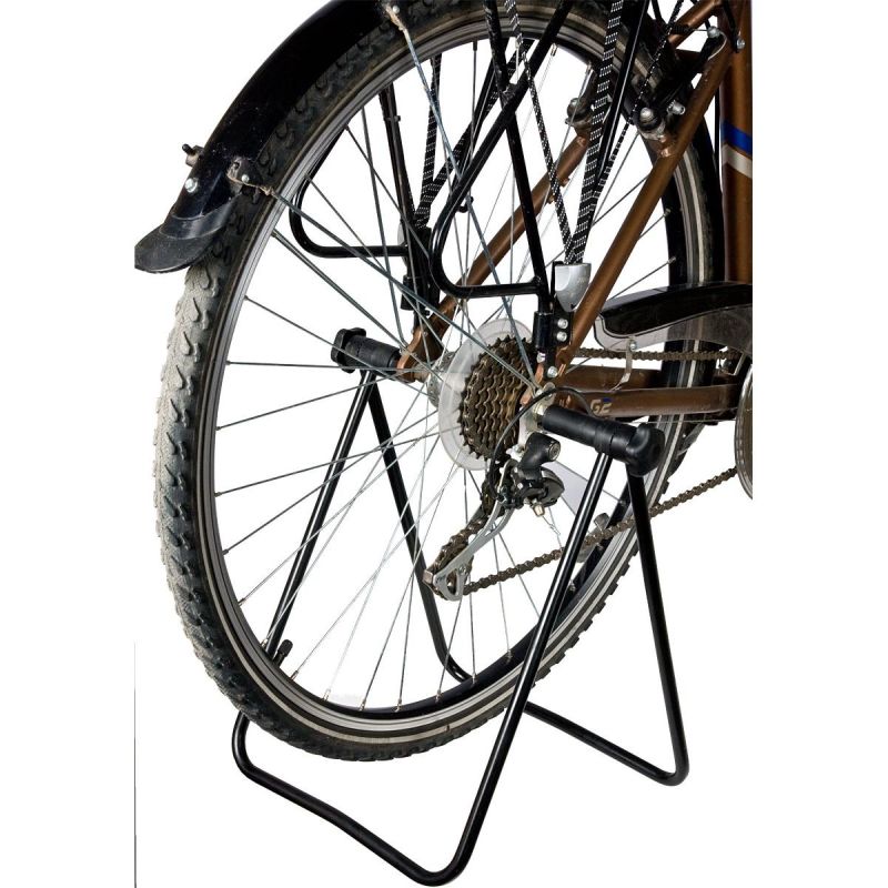 The stand structure is made of metal and powder-coated metal profiles and fits bicycles with 20-28 inch wheels.