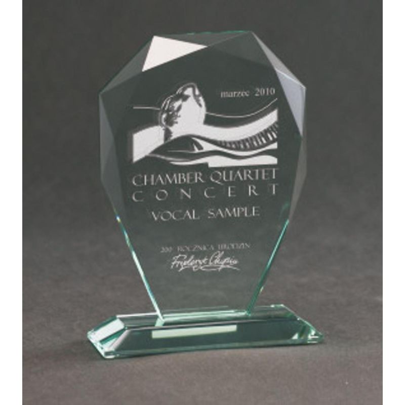 Engraved glass trophy with case