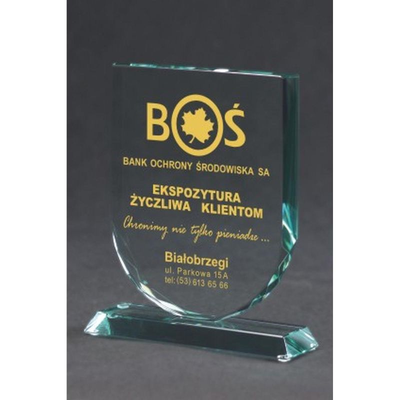 Engraved glass trophy with case + paint filling