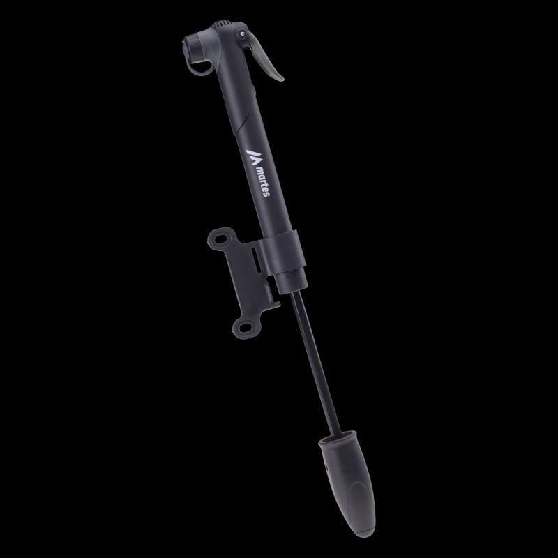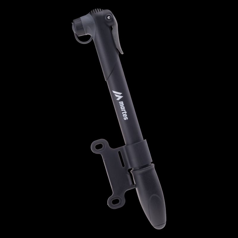 BIKE PUMP SIZE (AFTER FOLDING): 225 x 21 mm WEIGHT: 100 g MATERIAL COMPOSITION: PLASTIC, STEEL SPECIFICATION: - UP TO 7 BAR - POSSIBILITY OF CONNECTING TO ALL TYPES OF VALVE (PRESTA, DUNLOP)