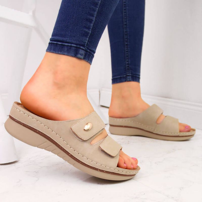 eVento W EVE224B beige wedge sandals with velcro