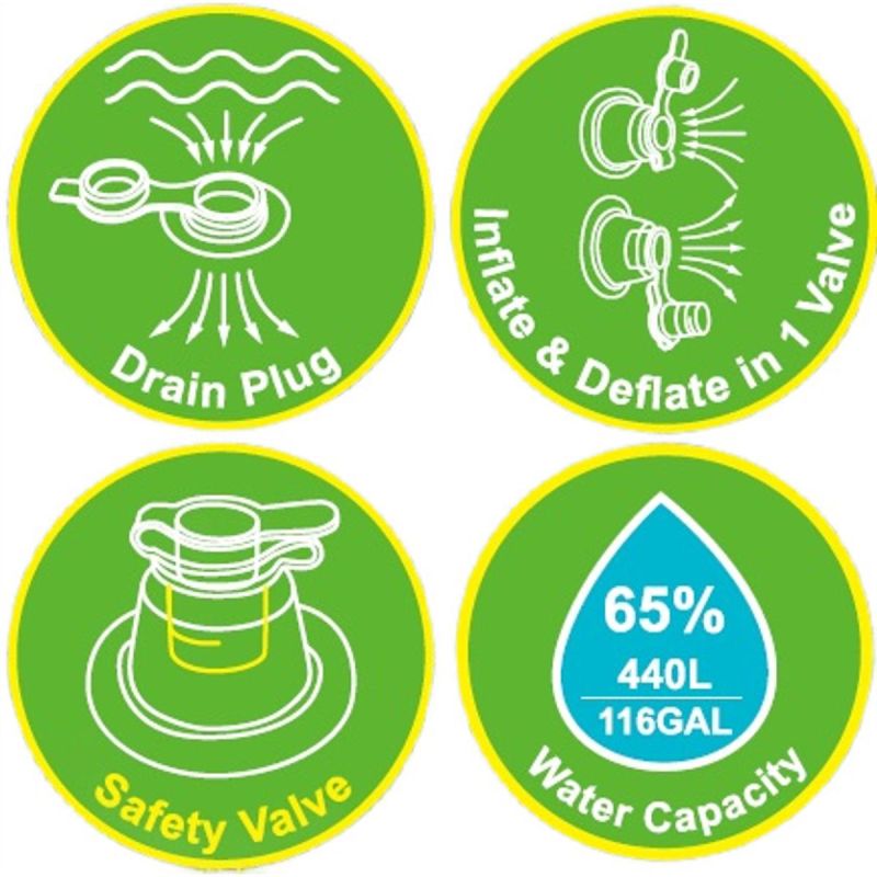 The structure, based on two solid rings, ensures the pool's stability, minimizing the risk of tipping or accidental deflation. Reinforced rings effectively maintain the pool's shape even during intense play and dynamic use. This allows children to play safely, while adults can relax without worrying about a sudden loss of stability.