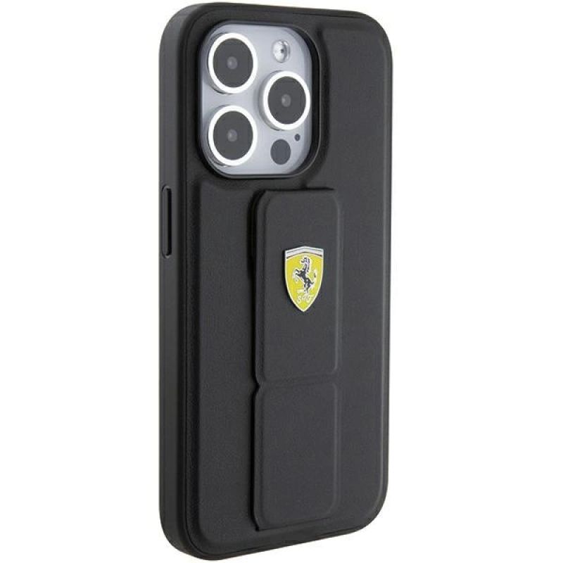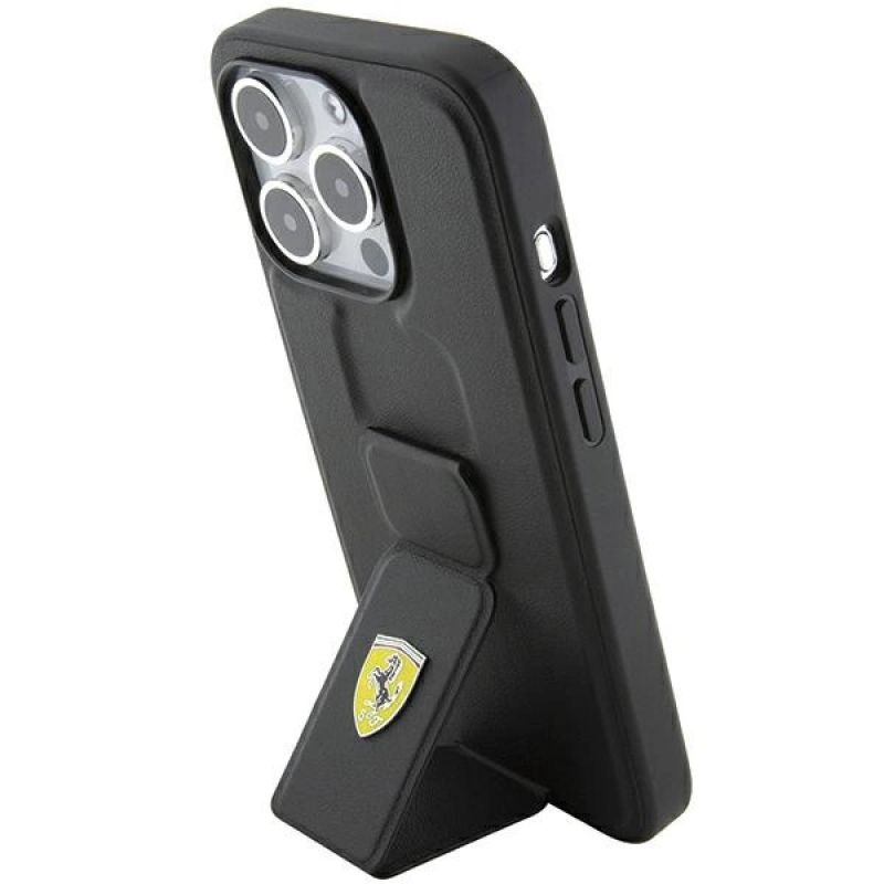 Ferrari Grip Stand Metal Logo case for iPhone 15 Pro Max - black