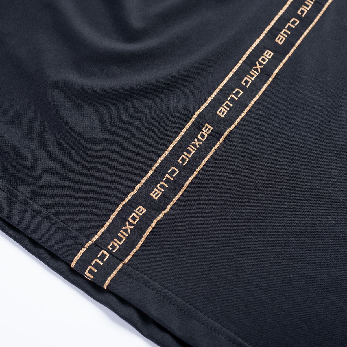 The loose fit allows for complete freedom of movement during exercise. The design is complemented by a logo inspired by combat sports.