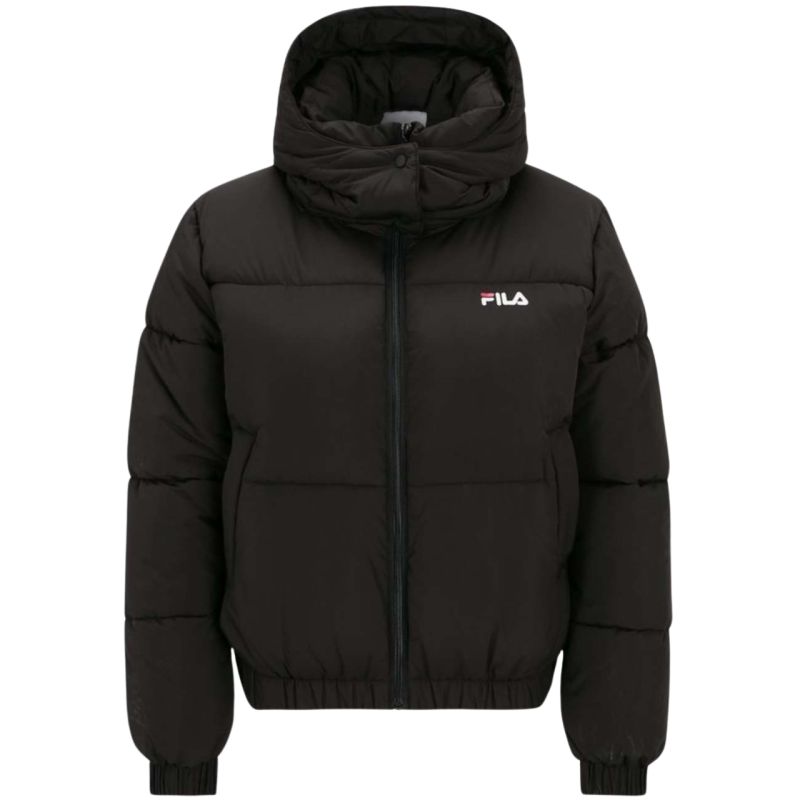 This women's Fila jacket is perfect for winter. The outer fabric has a water-repellent finish that limits moisture absorption. It features a standard fit, elastic drawcord hem, and a quilted construction with evenly distributed synthetic down padding. It features a detachable hood with snap closure. Elastic cuffs. The long zipper is integrated with an internal storm flap. Zippered side pockets.