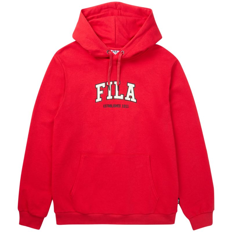 Fila Rifredi Men's Red Sweatshirt FAM1218 30002. This Fila sweatshirt is perfect for everyday wear. Standard fit. Adjustable hood. Large logo. Kangaroo pocket. Ribbed cuffs and hem. Material: 70% cotton, 30% polyester