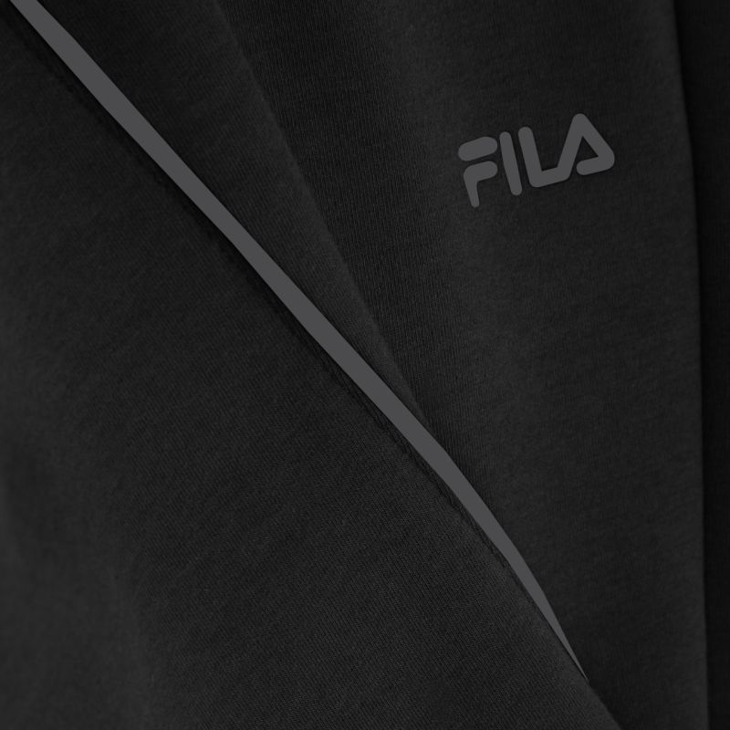 Fila Rivoli Men's Pants Black FAM1119 80010 These Fila men's pants are perfect for everyday wear. Subtle logo detailing. The blend of fibers ensures natural ventilation and durability. An elastic waistband with an internal drawstring allows for a better fit. Slim fit with tapered legs. Open side pockets. Material: 53% cotton, 42% polyester, 5% elastane