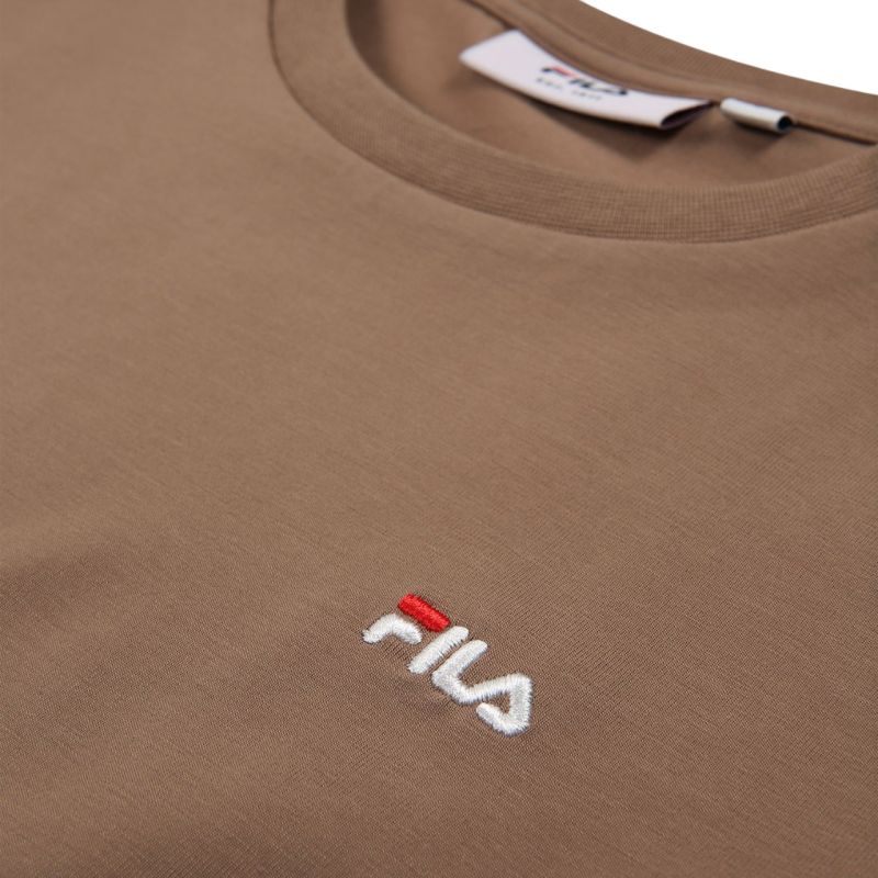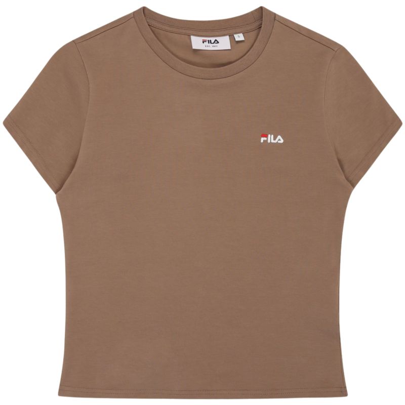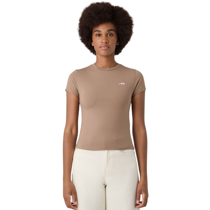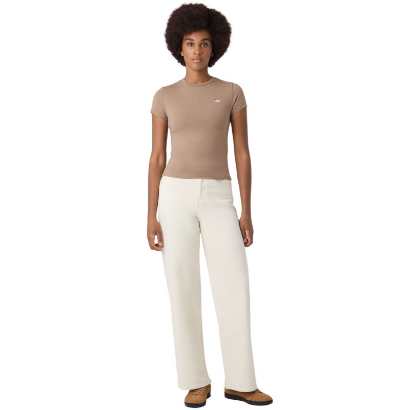 Fila Trivero Women's T-Shirt Beige FAW1205 70008 This Fila women's T-shirt is perfect for everyday wear. Small, embroidered logo. Slim, fitted cut. Soft fabric. Material: 93% cotton, 7% elastane