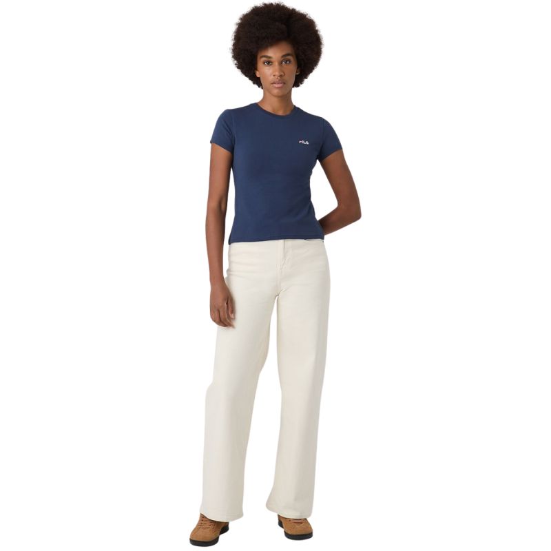 Fila Trivero Women's T-Shirt, Navy Blue FAW1205 50004. This Fila women's T-shirt is perfect for everyday wear. Small, embroidered logo. Slim, fitted cut. Soft fabric. Material: 93% cotton, 7% elastane