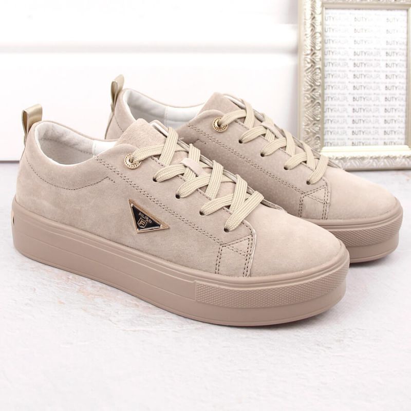 Filippo W PAW315C beige leather suede platform shoes