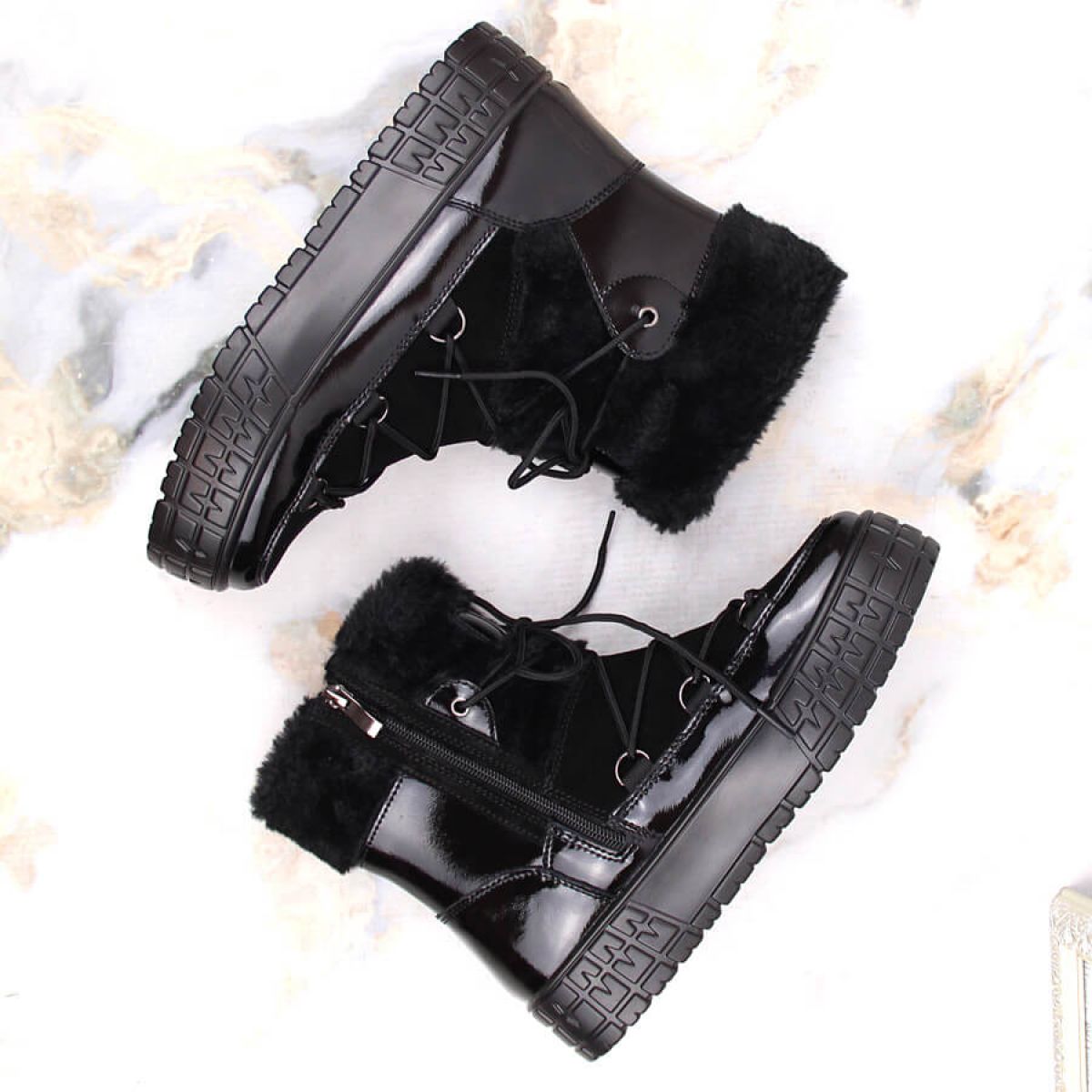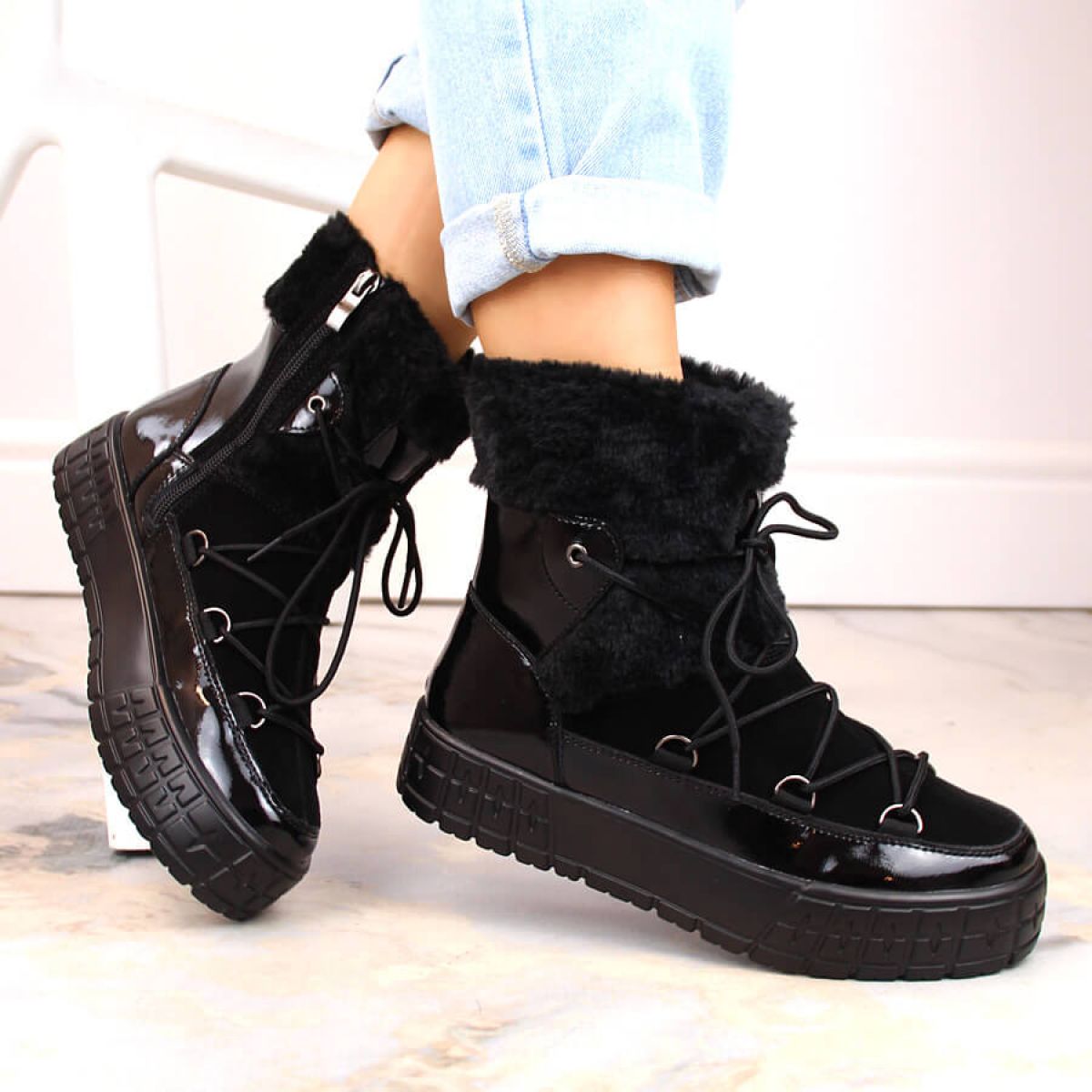 - fastened with laces