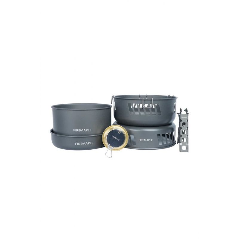 Set contents: Volcano alcohol burner, 2 l pot, frying pan, handle, stand with windshield