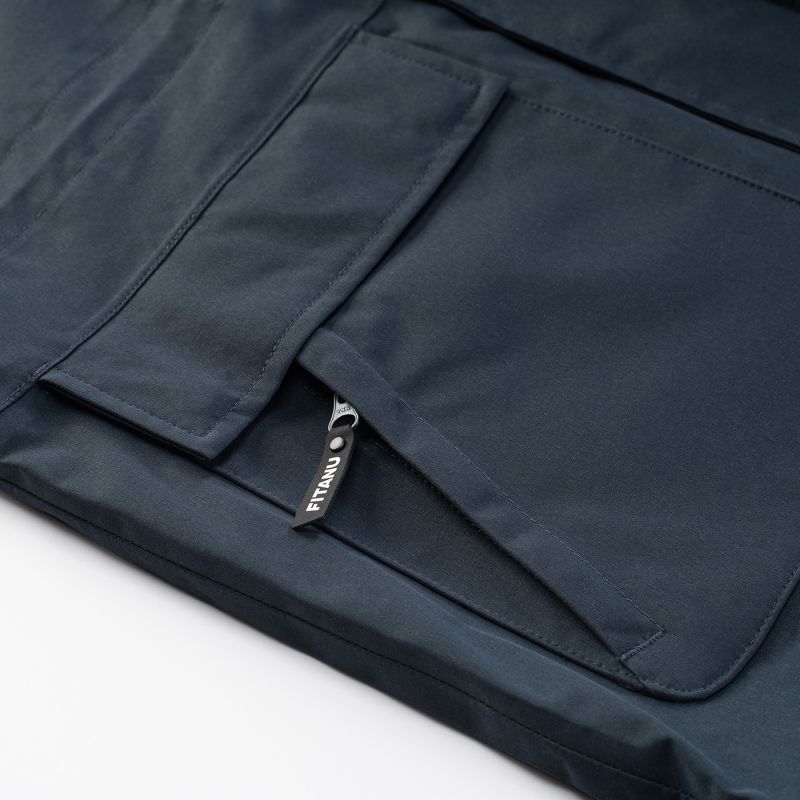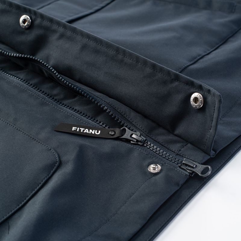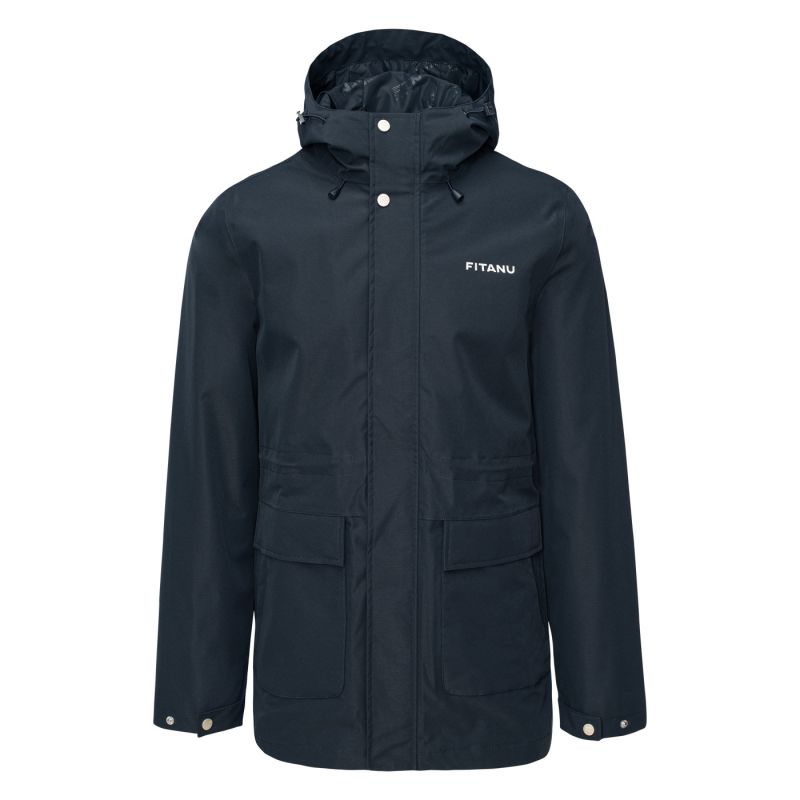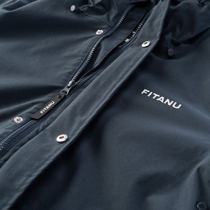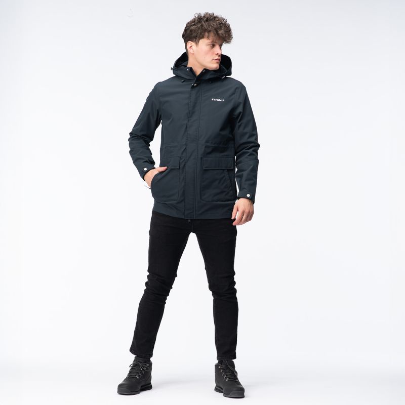 The men's VERLO jacket by Fitanu is a versatile, practical transitional jacket . It features an ActivGuard Pro® membrane with a 10,000 mm H2O waterproof rating and a 10,000 g/m²/24h breathability. A DWR coating on the outer fabric increases its water resistance. Taped seams seal the seams, protecting them from getting wet. The VERLO jacket has an integrated, adjustable hood. Drawstring waistband and adjustable cuffs allow for a personalized fit. A two-way YKK® zipper allows you to easily get into your car without having to remove the jacket. This model features an internal pocket, a so-called "dry pocket," for storing a phone or wallet, and external pockets.