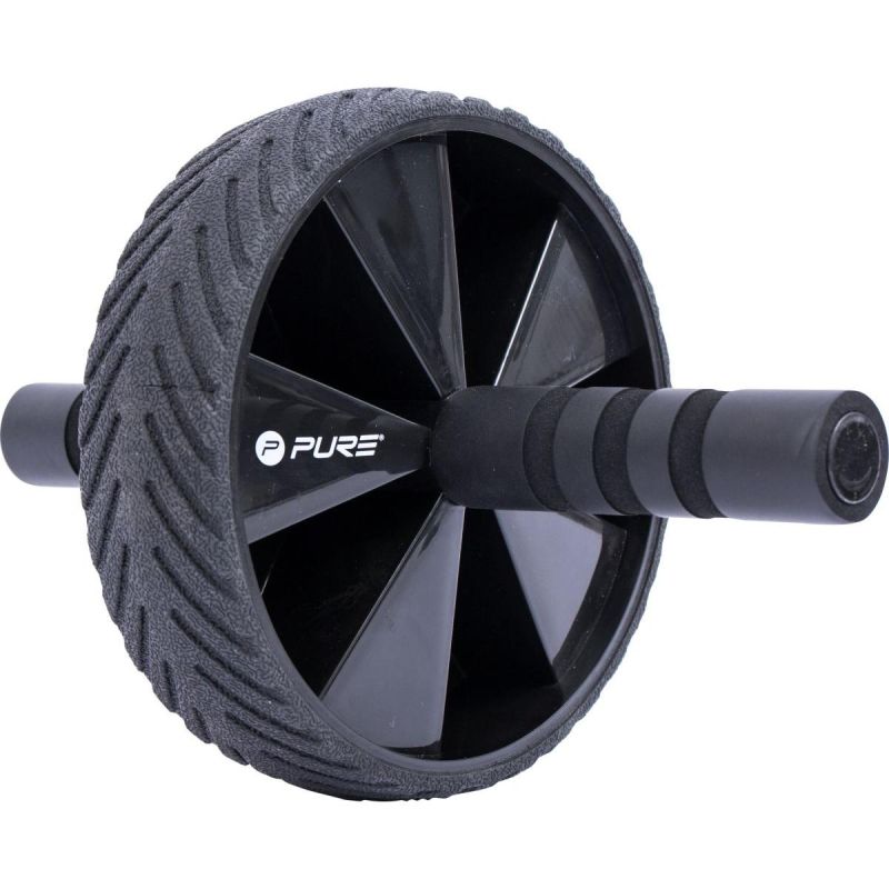 The wheel has ergonomic handles covered with soft foam, ensuring a comfortable and secure grip during exercise.