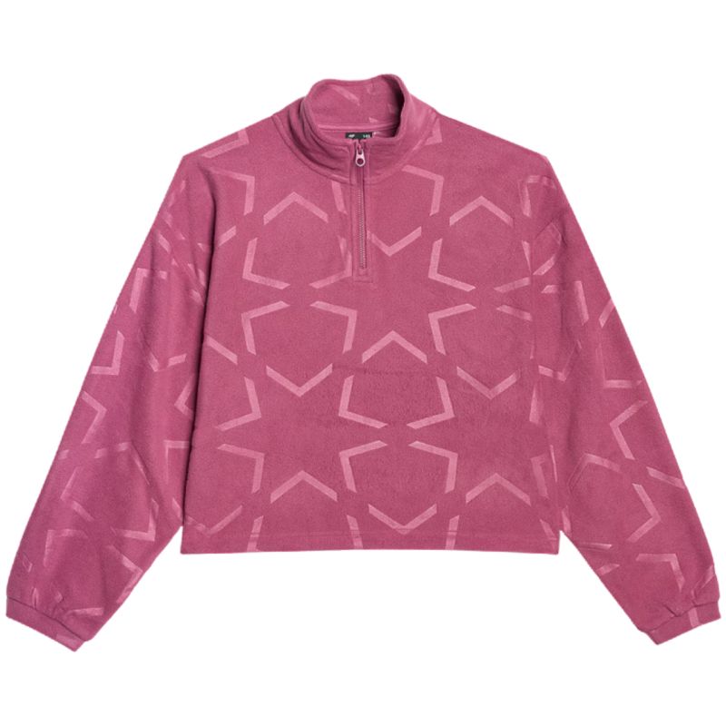 4F F342 Girls' Fleece, Dark Pink 4FJWAW25TFLEF342 53A 4F Girls' Fleece. Made of soft, comfortable fabric. The entire design is supported by 4FWarm technology, which helps maintain optimal body temperature. Loose fit for unrestricted movement. 1/3-length front zipper. Tunnel drawstring hem with a drawstring. Material: 100% polyester