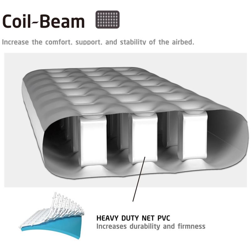 The Coil Beam construction is the perfect solution for those who expect not only comfort but also durability and stability from an air mattress. Thanks to the use of vertical beams, the mattress offers excellent support and comfort during use. Perfect for travel, at home, in the garden, or on the plot.